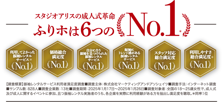 スタジオアリスの「ふりホ」は、追加料金を気にせず、心から成人の日を楽しんでほしいという想いから一律価格にこだわっています。一律だからといって振袖の品質を落としているわけではないので、安心して振袖をお選びください。