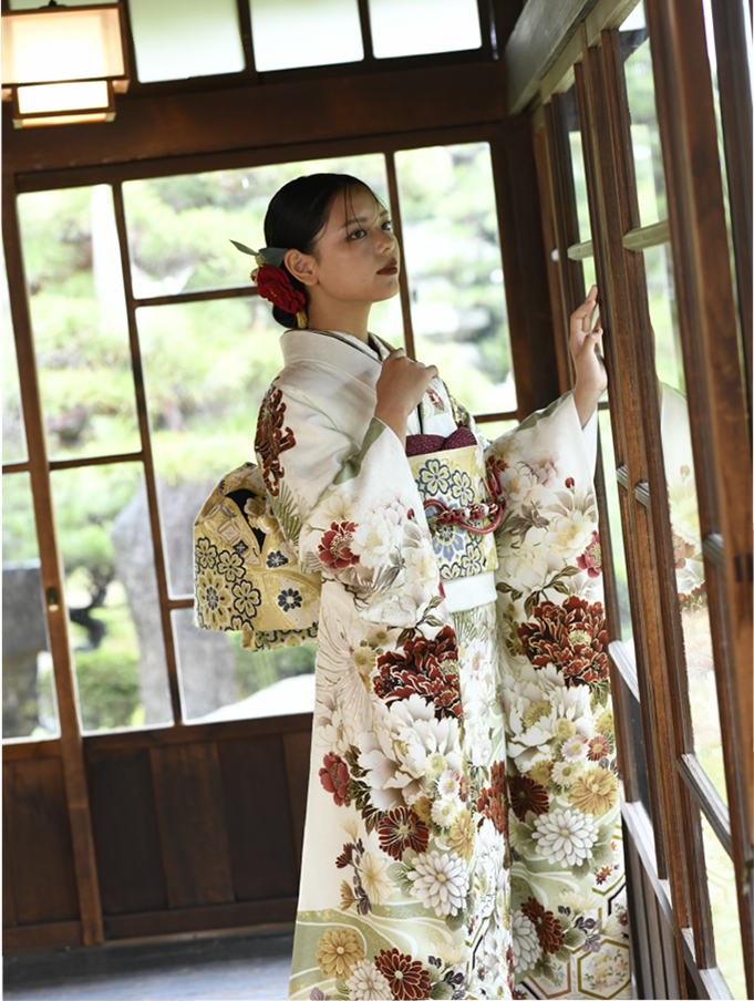 その想いを叶えるJILL STUARTの振袖が誕生しました。ヴィンテージ調のフラワーモチーフが印象的。上品な甘さをミックスしたデザインで、一瞬で特別な日のヒロインに。あなただけの1着が待っています。
