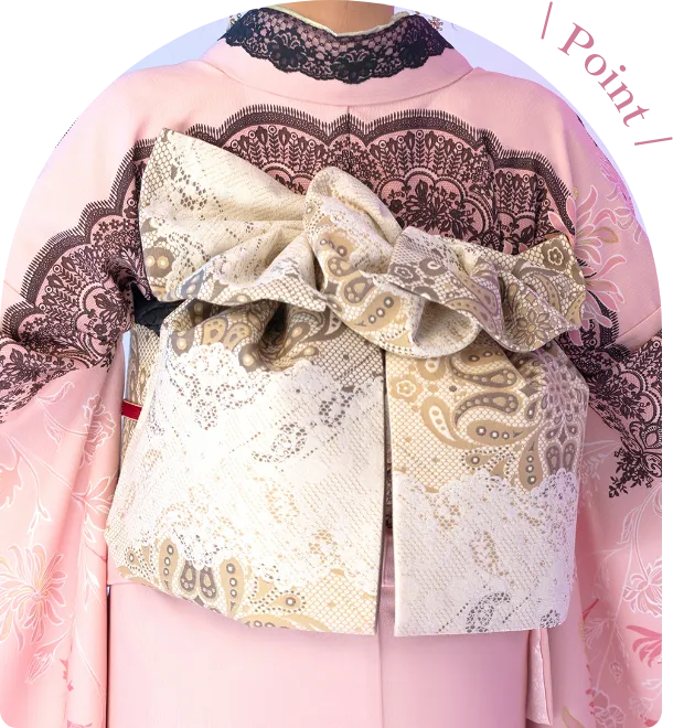 ボリューム感のある帯結びで、360度どこから見ても可愛く。