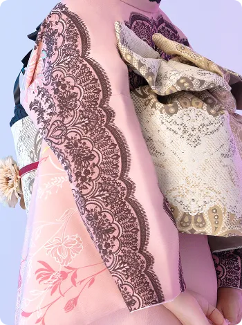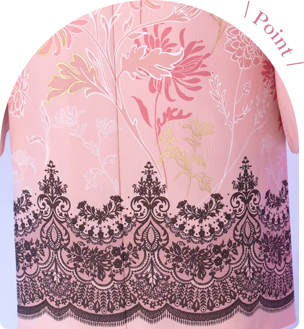 ピンクの振袖に描かれたレース風の