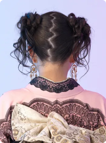 ツインスタイルをベースに、後れ毛や立体感でやわらかさを演出。