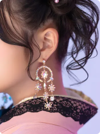 顔まわりを華やかに見せながら、写真映えも抜群な、こだわりのディテールです。