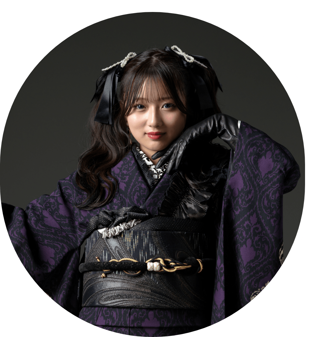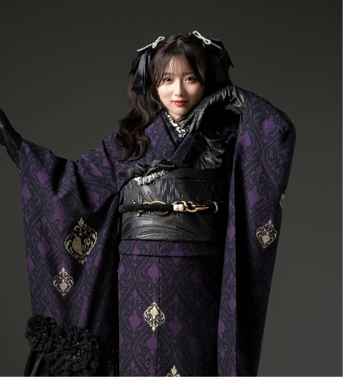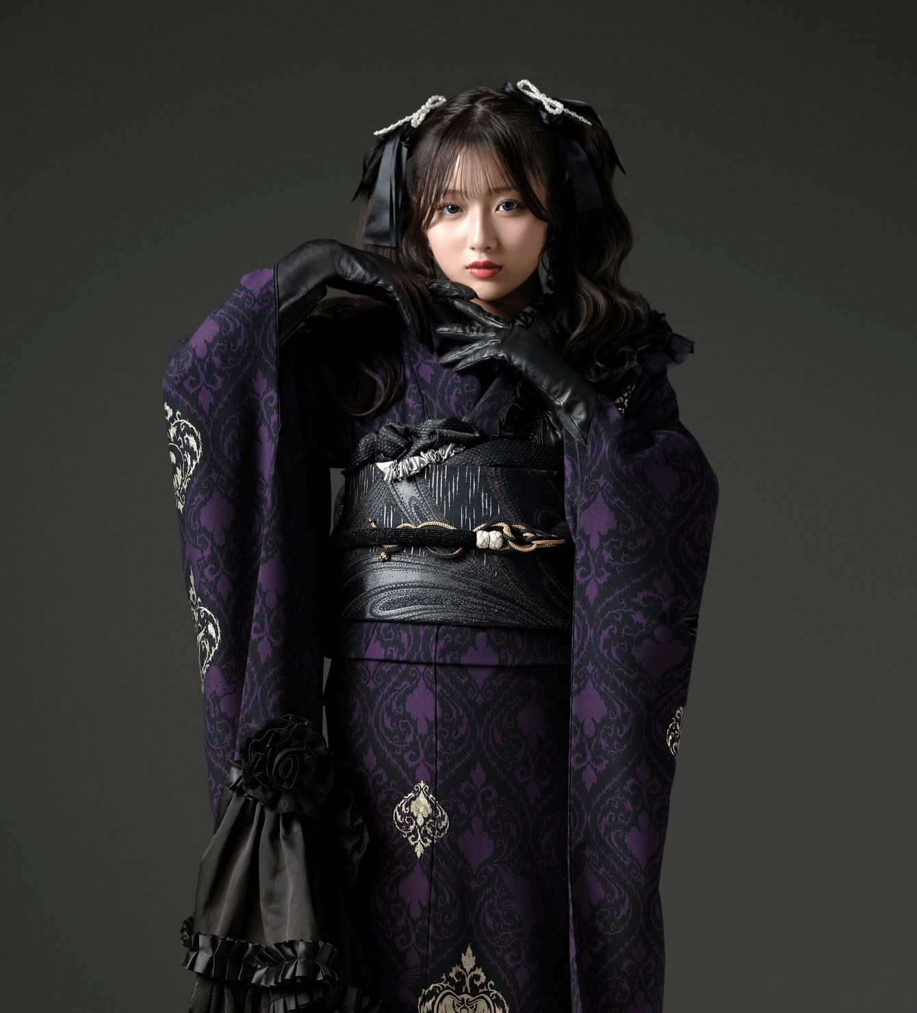 - A.髪もここまで高いツインテールもやったことがないですし、普段の私服でも着ない系統。こういう暗い色の振袖を着たことがないので、ちょっと新しく挑戦してみたいなと思って。仲良い友達とか家族とかに見せたら”意外”って言われそうなんですけど、『1番いいんじゃない?』って言ってもらえそうです。