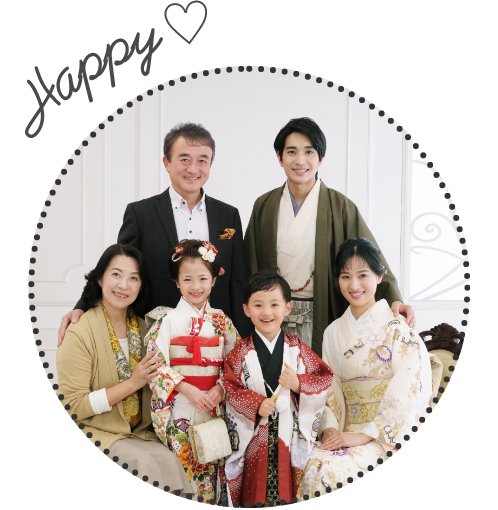 パパママ着物フォトプラン家族みんなで撮るなら「パパママ着物フォトプラン」がおすすめ!お子さまの着物姿に合わせて、親子で気軽に写真を楽しめます。 -