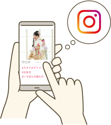 - 期間中にスタジオアリスで撮影(ご購入)された「宝ものPHOTO」の中で、応募されたい写真1枚のSNS用データやご購入画像データを、ご自身のInstagramに投稿してください。
