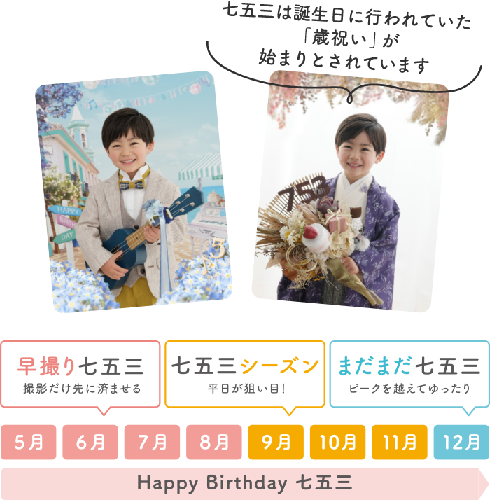 バースデー撮影と七五三撮影を一緒に楽しめるのが「Happy Birthday七五三」。