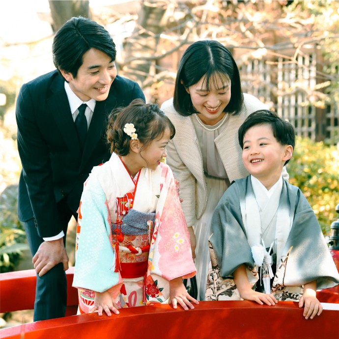 パパママ着物フォトプラン家族みんなで撮るなら「パパママ着物フォトプラン」がおすすめ!お子さまの着物姿に合わせて、親子で気軽に写真を楽しめます。 -