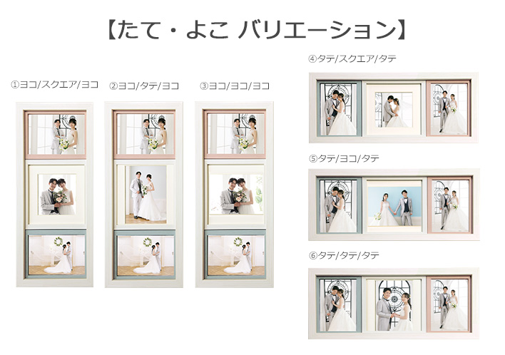 ハーフキャビネを3枚入れることができる写真フレームです。真ん中のお写真は、スクエアタイプの写真も入れることができます。