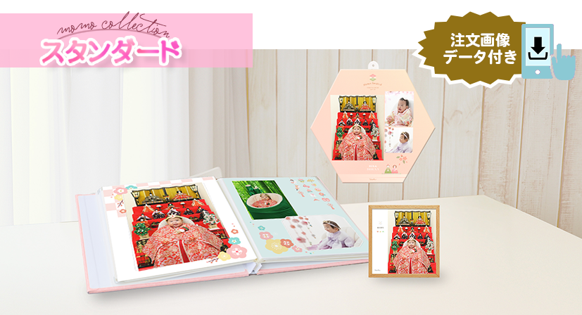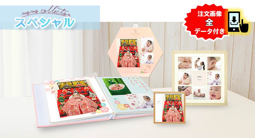 記念を綴って楽しむ「アルバム」や、飾って楽しむ商品が付いたお得な内容になっています。