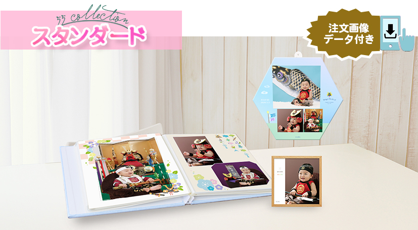 記念を綴って楽しむ「アルバム」や、飾って楽しむ商品が付いたお得な内容になっています。
