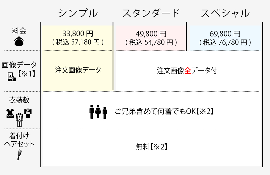 【※2】14歳以上は衣装のご用意がありませんので、ご準備を整えてご来店ください。