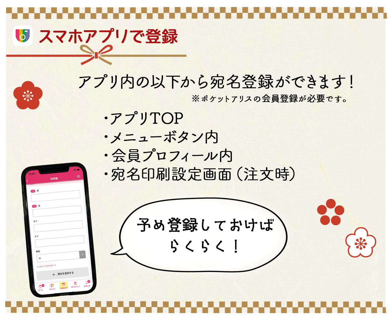 ポケットアリスなら、アプリでもPCでも宛名の登録ができちゃうんです!