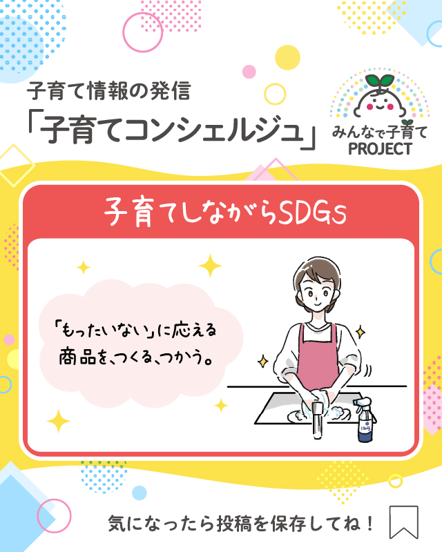 子育てしながらSDGs 近年、よく耳にする「SDGs」という言葉。環境問題や社会課題に関心はあるけれど、何からはじめればいいかわからない…。はじめの第一歩として、子育てしながら取り組めるSDGsの方法をご紹介します。 その01「もったいない」に応える商品を、つくる、つかう。 毎日の快適な暮らしは、皿洗いや洗濯、部屋掃除など、いくつもの家事の上に成り立っています。お子さんがいるご家庭では、特に衛生的に心地よく室内を保ちたいですよね。赤ちゃんを子育て中の家事は離乳食などで... 詳しく見る 1