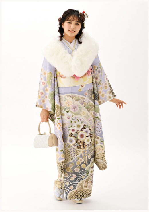 大人っぽいイメージのある紫の振袖ですが、花柄や淡い色を選べばかわいらしい優しい雰囲気も演出できます。