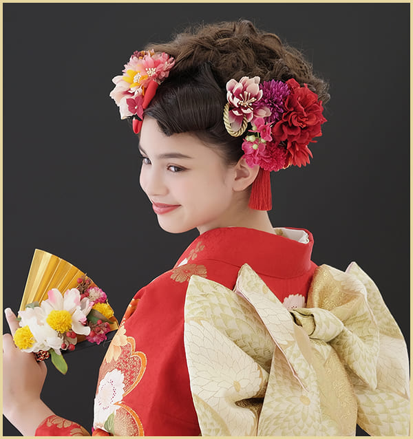 「ふりホ」の前撮り撮影には着付けとヘアセットが付いているため、別に美容院を予約する手間も費用もかかりません。