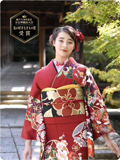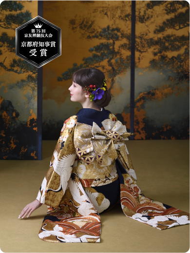京友禅競技大会格式ある京友禅競技大会で、名誉ある賞に選ばれた新作振袖が今年も登場。受け継がれた伝統の技に今の感性を加えたデザインは、思わず見惚れる美しさ。匠の手仕事とセンスが専門家に認められた特別な1着が、あなたの人生の節目を優雅に彩ります。