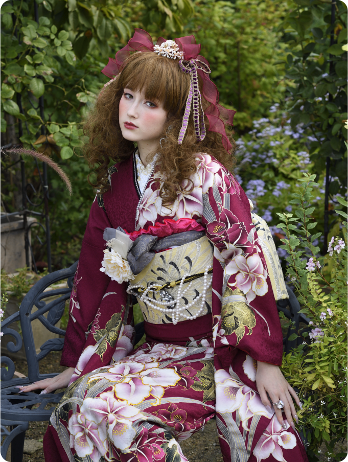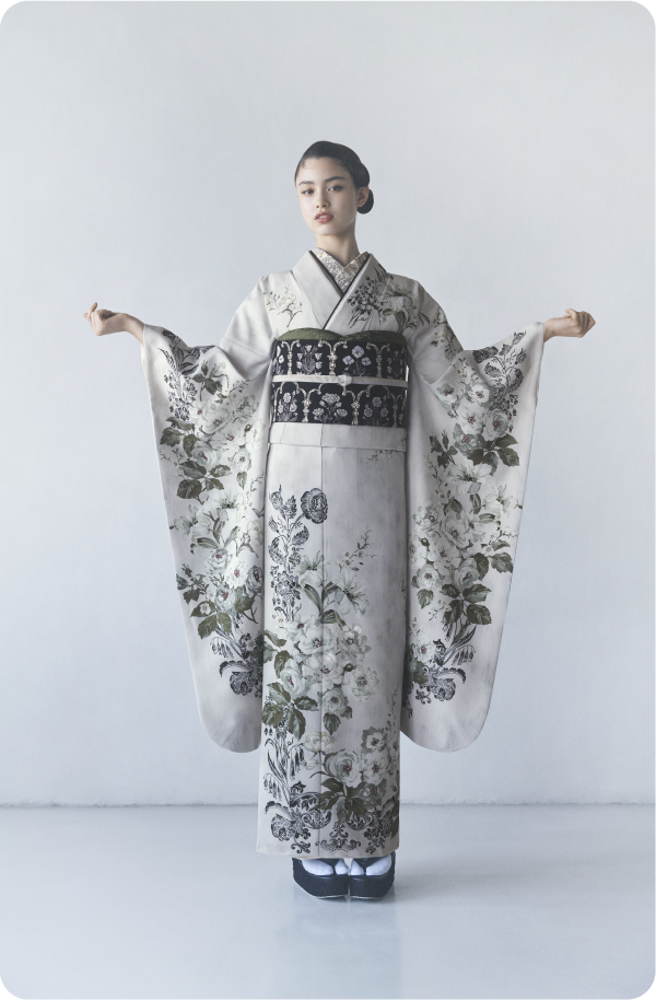 その想いを叶えるJILL STUARTの振袖が誕生しました。ヴィンテージ調のフラワーモチーフが印象的。上品な甘さをミックスしたデザインで、一瞬で特別な日のヒロインに。あなただけの1着が待っています。