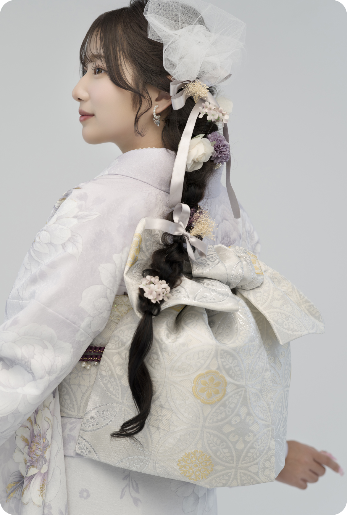 幼少期からスタジオアリスで撮影経験がある希空さん。今回のコラボレーションでは、ご自身の“好き”や“挑戦したい世界観”を反映しながら、4LOOKの振袖撮影に参加していただきました。